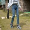 Women's High Waist Slim Ripped Straight Jeans - 2024 Spring Style, Nine-Point Length, Elastic Fit, Small Sizes Available