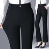 Elevate your wardrobe with these high-waist black flare pants, perfect for middle-aged moms seeking both comfort and style. Crafted from soft and breathable viscose, these pants offer a flattering fit with their high waistline. The sportive style is complemented by functional pockets, making them a versatile addition to any wardrobe. Ideal for any occasion, these pants effortlessly combine elegance with everyday practicality.