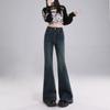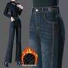 Women's High Waist Fleece-Lined Grey Flare Jeans - Autumn/Winter Slimming Design