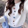 Design sense niche irregular color button knitted cardigan women's autumn and winter new age-reducing gentle wind sweater jacket