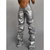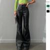 Western Style 2023 Women clothes New Fashion Pleat Pu Imitation Leather Sexy Low Waist Street Shot Straight Casual Trousers