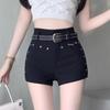 2025 Women's Spicy Retro Studded Black Denim Bodycon Shorts – Versatile, Slimming, Elastic, Comfortable Summer Hot Pants.