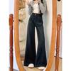 Small Heattech Fleece Padded Jeans Female Vibe American Denim Dark Blue Wide-Leg Pants Autumn and Winter Straight-Leg Pants
