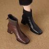 Autumn and Winter New Rock Leather Short Boots for Women, French Luxury Mid Length Slim Boots, High-heeled Women's Boots, Shoes