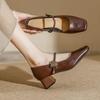 Square head Mary Jane shoes women's 2025 French retro T-button thick heel single shoes simple temperament light luxury women's high heels