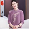 Mom spring, autumn and winter new stand-up collar disc-buckled embroidered cardigan jacket in the elderly and women's knitted Tang suit top