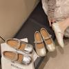 Scarpe da donna Mary Jane in pelle argentata con patchwork, ballerine con cinturino alla caviglia, mocassini glitterati, scarpe eleganti da donna con brillantini