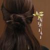 Bamboo leaf pearl fringed hairpin antique Mori simple disc hair wooden hairpin fashionable retro Guochao hair accessories women