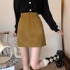 Elevate your autumn and winter wardrobe with this sophisticated high-waist skirt. Crafted from soft corduroy, this solid-patterned midi skirt features a chic A-line silhouette with a modern bodycon fit. The stylish design includes a subtle slit for added elegance, making it a perfect blend of comfort and fashion for any occasion.
