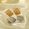 Summer Titanium Steel Striped Square Stud Earrings - European & American Fashion