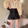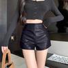 Black Elastic Waist Autumn and Winter Slimming Soft Leather Shorts