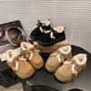 Fashion Platform Wrapped Hairy Slippers for Women 2025 Autumn and Winter New Small Heightened Lace-up Lazy Cotton Shoes