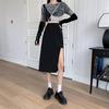 Women's Black High-Waist Slit A-Line Midi Skirt for Autumn