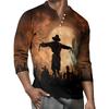 Men's Button-Down Contrast Raglan 3/4 Sleeve Top
