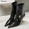 Fashion 2025 Spring New Style Metal Stiletto Pointed Ankle Boots Women Fashion High Heeled Patent Leather Side Zipper Black Fashion Boot