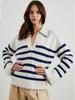 Women's Autumn and Winter Half Zip Lapel Loose Striped Knit Jacket