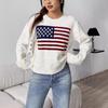 Høst og vinter strikkeplagg for kvinner i større størrelser Flagg Uformell løs genser med rund hals, strikket genser