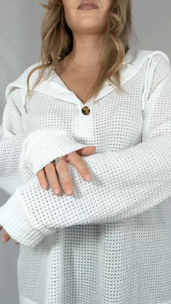 Autumn Solid Color Hooded Button Loose Long Sleeve Sweatshirt