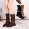 Fashion Pointed Toe Suede Warm Ankle Boots Women Winter Thick Heel Metal Belt Buckle Design Modern Boots for Women Mujer