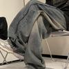 High Street Denimbukser for menn, Retro distressed, Løse rette benbukser, Vide sportsbukser, Trendy