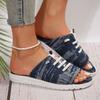 2024 Summer New Foreign Trade Large Size Women Fringe Canvas Flat Sandals Simple Style Half Drag Women's Shoes