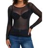 Women's Spice Girls Sexy Mesh Splicing Velvet Solid Colour See Through Hair Stripe Long Sleeve Fishbone T-Shirt