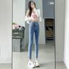Women's High Waist Slim Ripped Straight Jeans - 2024 Spring Style, Nine-Point Length, Elastic Fit, Small Sizes Available