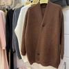 Double-Breasted Loose Knit Cardigan with Square Collar - Spring & Autumn French Style