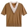 2025 Summer French Retro Color Block Polo Knit Shirt