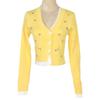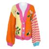 Women's French Retro Knit Cardigan: V-neck, Long Sleeve, Beaded Faux Two-Piece, Color Block Short Top