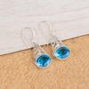 Vintage Swiss Blue Topaz Gemstone 925 Stamped Silver Jewelry Drop Earrings1.68" CE-15-9
