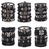 Vinatge Gothic Punk Skull Star Metal Multilayer Leather Men Bracelets & Bangles