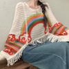 Autumn New Rainbow Striped Hollow Sweater Women's Fashionable Loose Design Tassel Knit Sweater