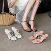 Slippers women's summer new high-heeled cool slippers wear one-character sandals square head open-toed slippers