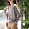 Spring and summer ice silk sunscreen air conditioner shirt thin blouse large size fat mm seven-quarter sleeve outer knitted cardigan women's coat