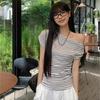 Women's Off-the-Shoulder Striped Knit Tee: 2024 Slim-Fit Summer Design