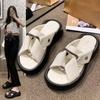 Round Head Set Toe Slip-on Metal Decoration Soft Bottom Soft Surface Thick Bottom 2024 Summer New Fashion Women's Slippers