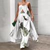 New Vacation Print Elegant Two-piece Set Sling Sleeveless Top and Slit Skirt sets Women
