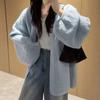 Knitted cardigan women's spring and autumn new lazy wind loose V-neck solid color soft waxy versatile sweater jacket