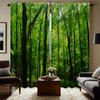 2PC Home Green Forest Curtains With Landscape Background And Pole Pocket Curtains, Kitchen, Coffee Shop, Living Room