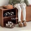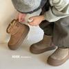 Winter new girls' big cotton shoes lace edge floral fleece frosted leather cotton shoes