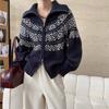 Korean version of the retro contrast color long-sleeved thick sweater, autumn and winter new lazy style short knitted cardigan jacket