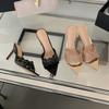 Fashion Luxury Mesh Thin High Heel Women Sandals Summer Fashion Pointed Toe Shallow Slide Shoes Comfort Elegant Belt Buckle Ladies Shoes