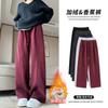 Ankola red sweatpants women's new spring, autumn and winter fleece sweatpants loose high-waisted wide-leg pants