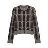 25 Spring New Women's Clothing Idle Style Plaid Printed round Neck Long Sleeves Knitting Cardigan Outwear 6236006