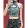 Sneaky Design Sexy Retro Washed Denim Backless Halter