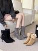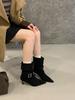 2025 autumn and winter new fashion versatile pointed heel suede French high heel thin short boots women's buckle belt