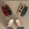 Women's flat woolen shoes outside, Mary Jane's fleece skirt, fairy ballet, fluffy shoes