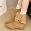 2024 New Fashion Shoes Female Women's Boots Autumn Pointed Toe Suede Solid Middle Barrel Large Size Black Boots Botas De Mujer