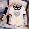 This versatile summer top is a must-have addition to any wardrobe, featuring a trendy Korean-style color block design. Made from high-quality cotton, it offers a comfortable, breathable fit that's perfect for warm weather wear. The short sleeves and loose fit ensure ease of movement, while the stylish V-neckline adds a touch of elegance to this casual piece. Ideal for pairing with a variety of outfits, it effortlessly combines comfort and style for any occasion.